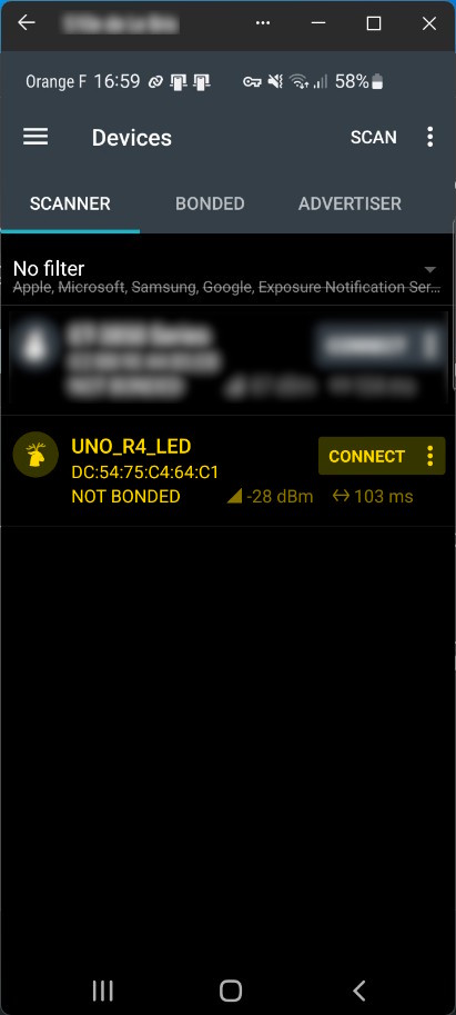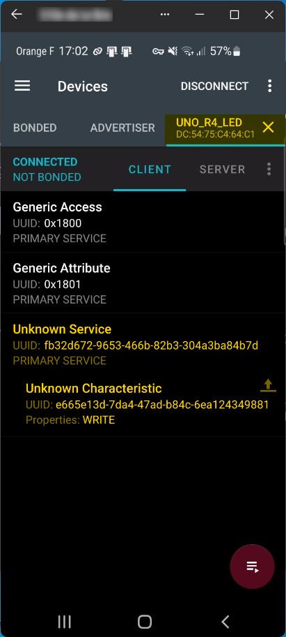 Le scan a détecté le périphérique nommé UNO_R4_LED